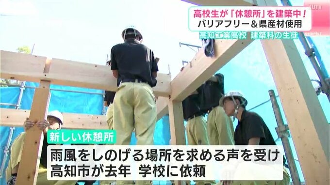 新しい休憩所を作っているのは高知工業高校建築科の生徒たちです。高知市清掃工場の敷地内、エコ・パーク宇賀にある休憩所は、利用者からの雨風をしのげる場所を求める声を受け、市が2024年、学校に建築を依頼しました。