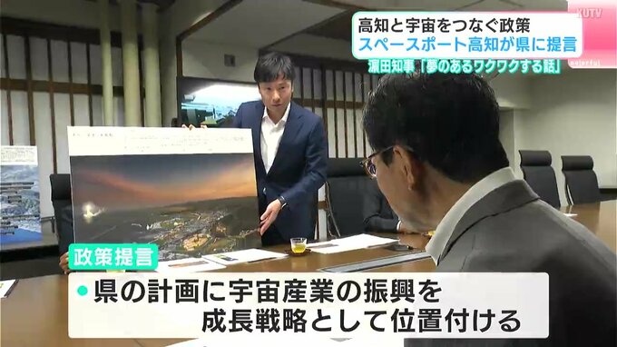 スペースポート高知は高知と宇宙を結ぶロケットの発着場をつくり宇宙産業の振興を目指す団体で、2025年2月に県出身者が設立しました。団体は構想実現に向けたこれまでの議論を取りまとめ、県に政策を提言。スペースポートの開港に向けて官民で連携することや県に専任部署を設置、県の計画に宇宙産業の振興を成長戦略として位置付けることが主な内容です。提言を受け濵田知事は「夢のあるワクワクする話を聞かせてもらった。体制づくりも含めて相談したい」と話していました。