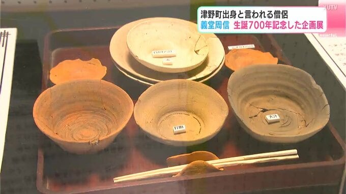 そんな義堂の生誕700年を記念し、16日から津野町で開かれているのが企画展「義堂・絶海と津野山文化」です。会場では義堂の経歴と時代の流れがパネルで分かりやすく解説されているほか、義堂が生きた室町時代の食器や五山文学に関する書籍など約20点が展示されています。