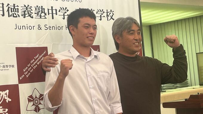 「海斗の夢でもあり私の夢でもあったので、2人の夢がかなったのでねぎらいも含めて握手をしました。6年間明徳義塾にお世話になって、明徳義塾じゃなかったらプロ野球選手になれなかったというぐらい感謝しています。野球選手でもありますけど1人の人間として成長してくれたのがうれしいです。まだプロ野球選手の底辺だと思うので一段一段、一年一年、一日一日を大事にしてみんなに愛される選手になってほしいです」