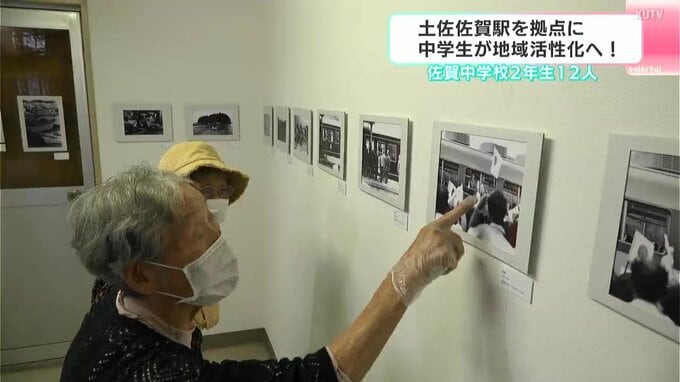 土佐佐賀駅で”駅びらき”を行ったのは、佐賀中学校の2年生12人です。佐賀中学校では総合学習の一環で、地域を活性化しようと「笑顔輝く佐賀」をテーマに活動しています。駅から賑わいの輪を広げようと、構内の空きテナントに地域の歴史や魅力を伝える写真や、総合学習で学んだ内容をまとめたパネルを展示。
