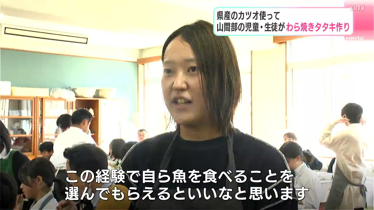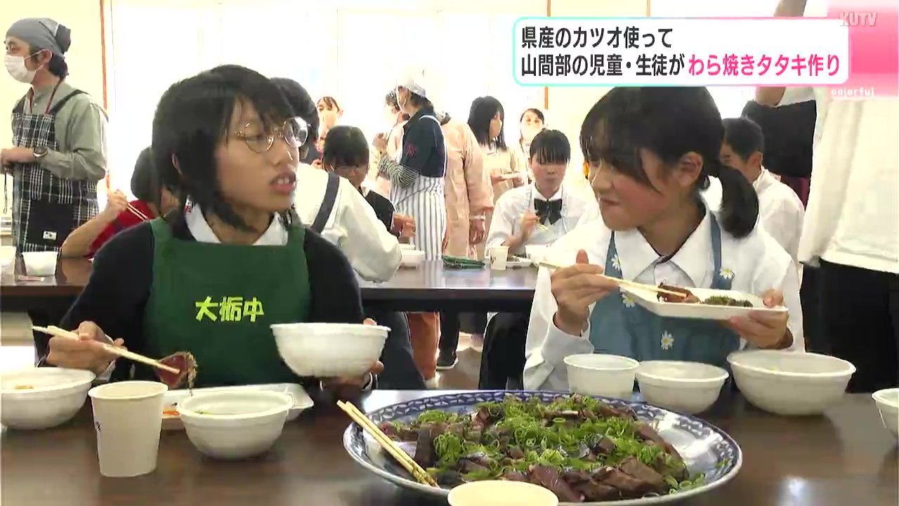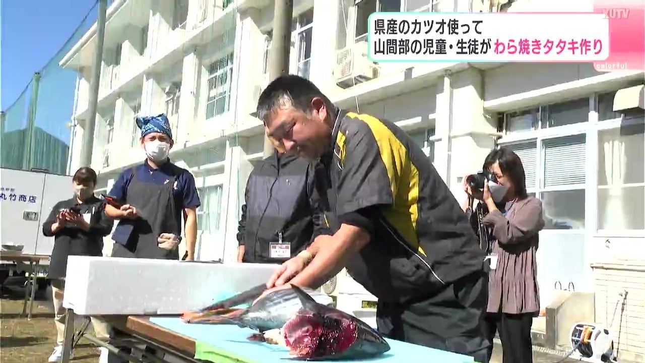 魚の魅力を知ってもらおうと高知県香美市の中学校で出前授業が行われました。山間部で暮らす児童、生徒が県産カツオの藁焼きタタキづくりに挑戦です。