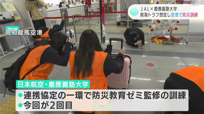 日本航空と慶應義塾大学が、南海トラフ地震を想定した防災訓練を高知龍馬空港で行いました。