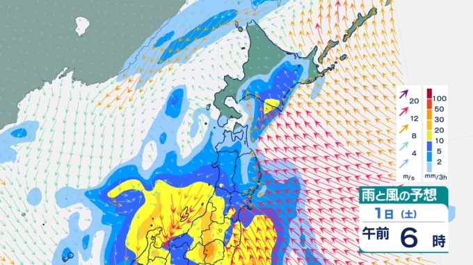 気象庁によりますと、北海道や東北では、1日、大雨警報や暴風警報が発表される恐れがあります。