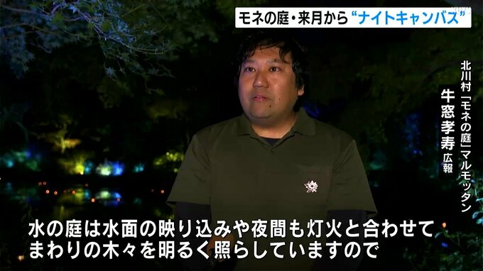 「水の庭は水面の映り込みや、夜間も灯火と合わせて、まわりの木々を明るく照らしていますので揺らめきを見ると心が癒やされると思いますのでぜひご覧ください」