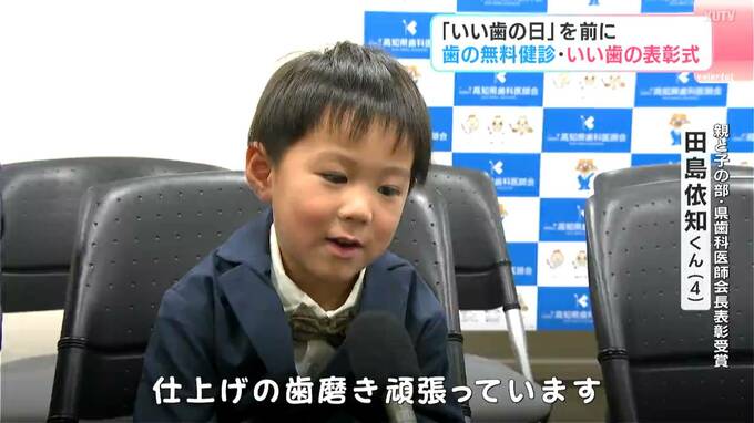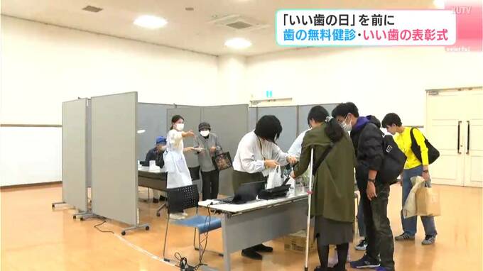 今月8日の「いい歯の日」を前に、高知市で歯の無料健診と、いい歯の表彰式が行われました。