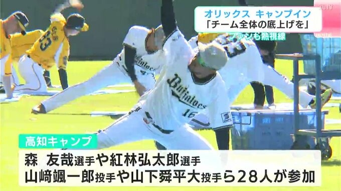 今回のキャンプには、野手では森友哉選手や紅林弘太郎選手。また、山﨑颯一郎投手や山下舜平大投手ら、侍ジャパンに選出されたこともある主力メンバーを含めた28人が参加しています。汗ばむ陽気となった6日の高知市。選手たちは、リラックスした様子でバッティングや走塁などの練習にのぞんでいました。球場には、県内外からファンがかけつけ、選手たちに熱い視線を送っていました。
