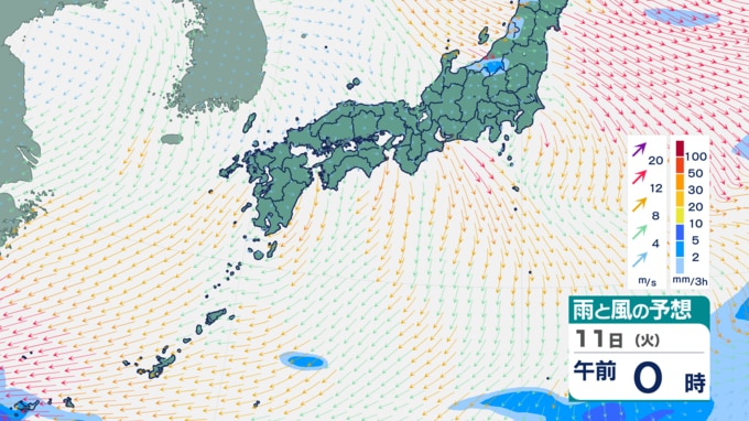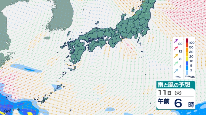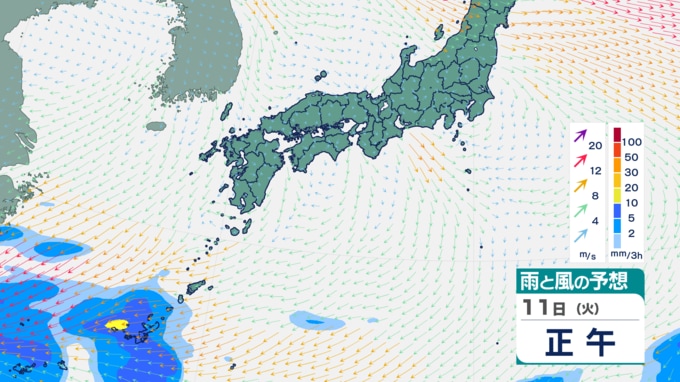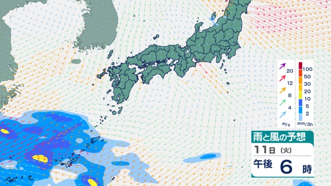 【台風情報】台風26号は日本へ接近の恐れ⋯発達した雨雲が流れ込み、あすには「非常に強い」勢力へ発達 来週は雨風に注意か【雨風シミュレーション】 2025年11月8日(土) 17:23 国内 天気 台風26号による雨は、沖縄では11日、九州などでは12日以降に降り出す見込みです。 11日雨風シミュレーション