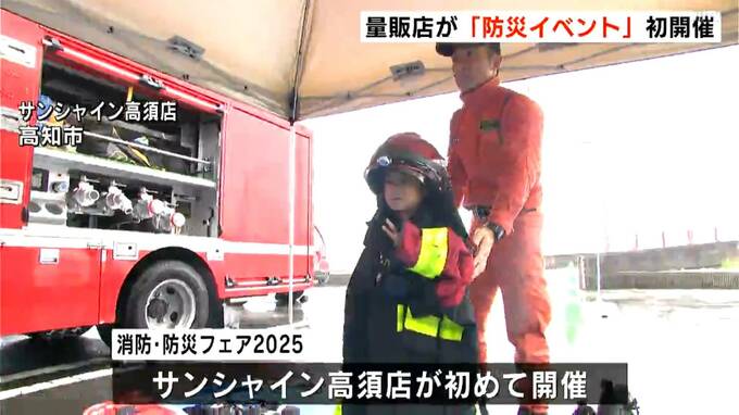 11月9日は119番の日です。高知市の量販店で消防・防災フェアが開かれ、訪れた親子が消火活動や防災食の試食を体験しました。