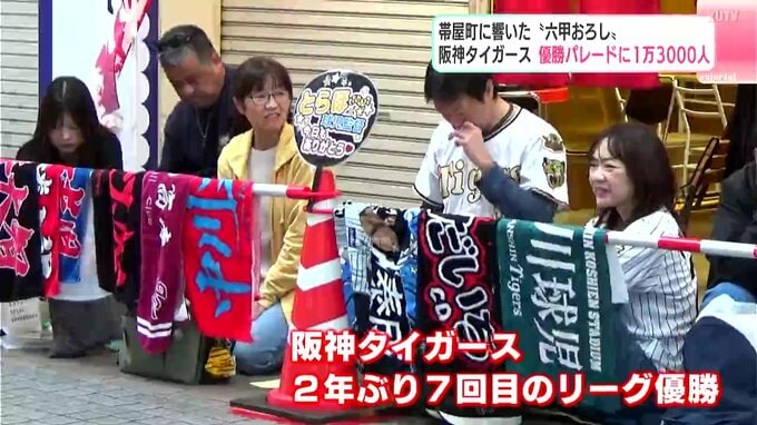 プロ野球「阪神タイガース」のリーグ優勝を祝うパレードが、高知市で行われました。集まったファンは、約1万3000人。帯屋町アーケードには六甲おろしが響き渡り熱気に包まれました。