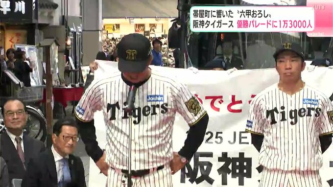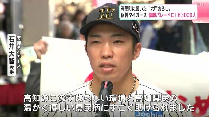 パレードに先駆けて行われたのは、高知県スポーツ顕彰の授与式です。藤川球児監督と高知ファイティングドッグス出身の石井大智投手に濵田知事から表彰状が手渡されました。
