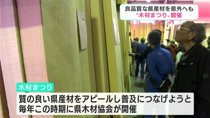 51回目を迎えた『木材まつり』。質の良い県産材をアピールし、普及につなげようと毎年この時期に、県木材協会が開いています。会場には2025年に伐採されたスギやヒノキなど、およそ1200立方メートルが並びます。一般的な木造住宅がおよそ100軒建てられる量だということです。