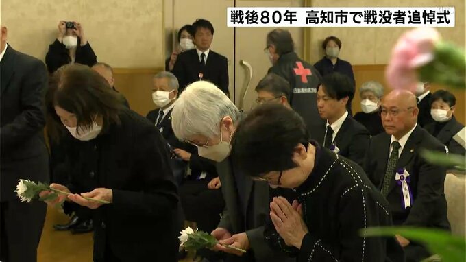 「忘れるわけにはいきません」戦後80年 高知市で戦没者追悼式 2025年11月14日(金) 11:50 国内 暮らし・マネー 戦後80年を迎えた2025年、太平洋戦争で亡くなった方を追悼し、平和を祈念しようと高知市で戦没者追悼式が開かれました。高知市は例年11月に戦没者追悼式を開いています。2025年は遺族や桑名龍吾市長らおよそ50人が…