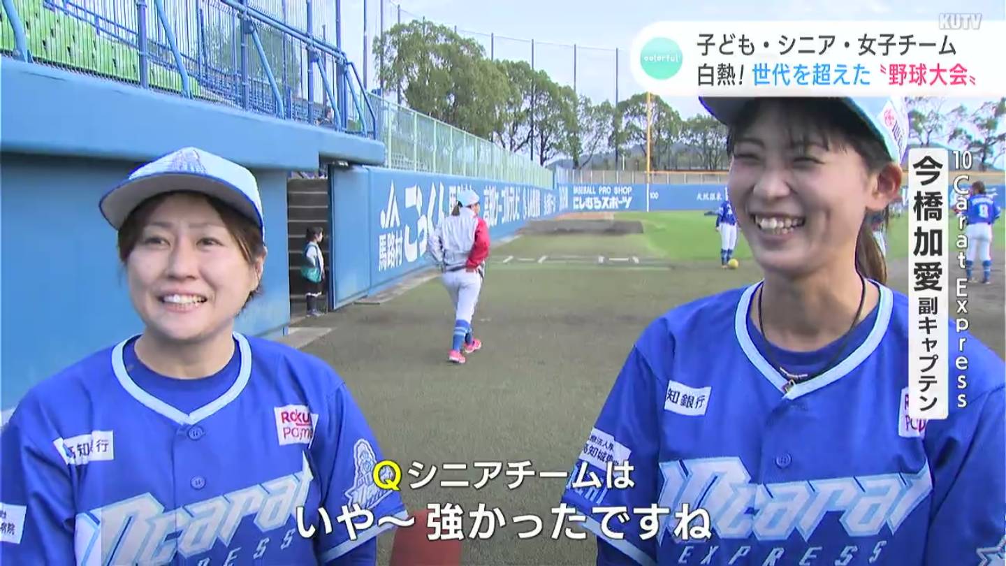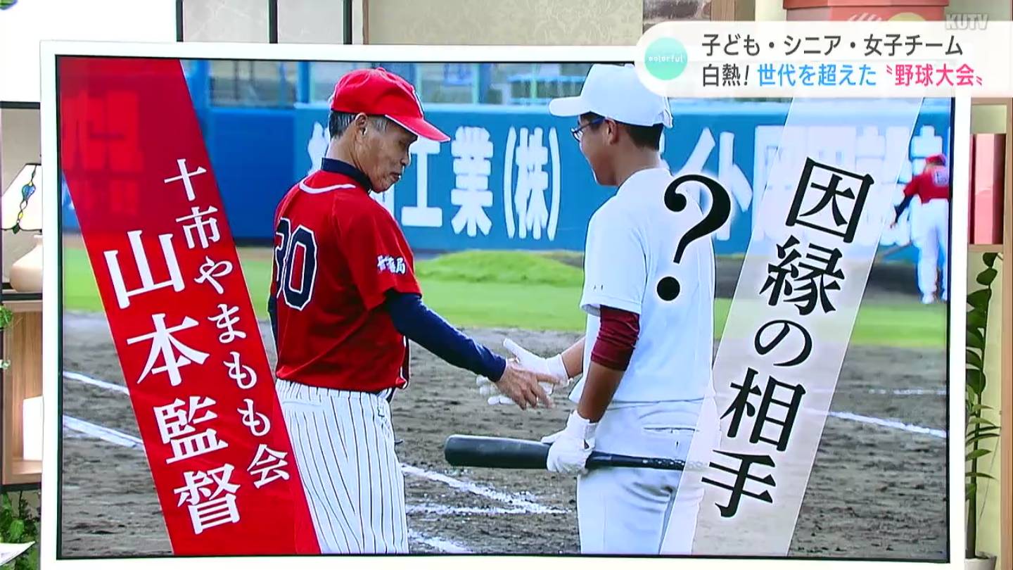 子ども、女性、シニア…世代も性別も超えた野球対決。高知県内初の女子硬式野球チーム「10Carat Express」と、元甲子園球児も在籍するシニアの強豪「十市やまもも会」の対戦。やまもも会のメンバーチェンジで、山本智彦監督自ら、ファーストを守ります。