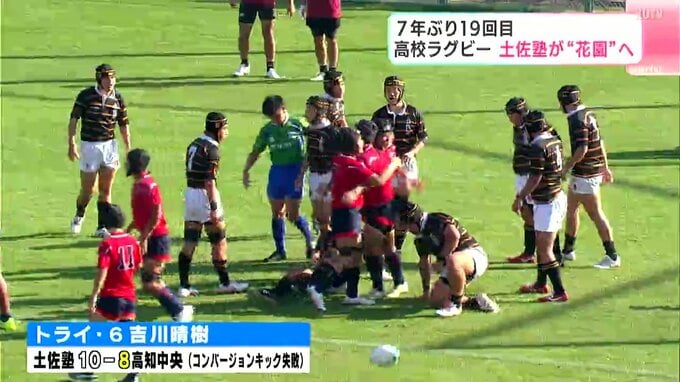 16日行われた全国高校ラグビー高知県予選の決勝。土佐塾が高知中央に勝利し、7年ぶり19回目の花園出場を決めました。