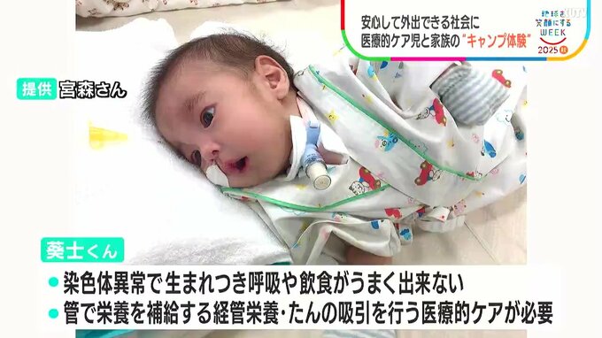 5歳の宮森葵士くんの家族もそのうちの一組。葵士くんは染色体異常で生まれつき呼吸や飲食がうまく出来ず、生後4か月の頃から鼻から管で栄養を補給する経管栄養を行っています。