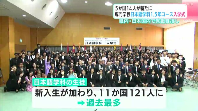 新入生が入ったことで、日本語学科の生徒はこれまでで最多の11か国121人となりました。
