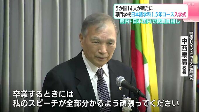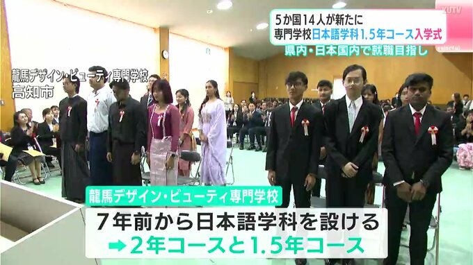 龍馬デザイン・ビューティ専門学校は7年前から、日本語学科を設けています。2年コースと1.5年コースがあり、18日、1.5年コースの入学式が開かれました。式に臨んだのはミャンマーやネパールなど5か国からの留学生合わせて14人です。