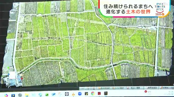 こちらは工事着工前の現場のデータ。田んぼの中にいくつも細い道が走っているのがわかります。