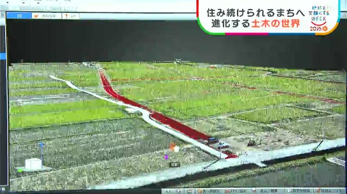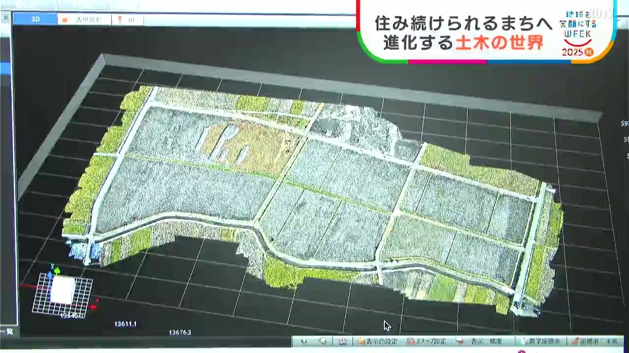 撮影したデータを専用のソフトに落とし込むと。工事で重要となる現場の平坦さがわかるほか、別のソフトと組み合わせることで現場全体の仕上がりもわかるということです。