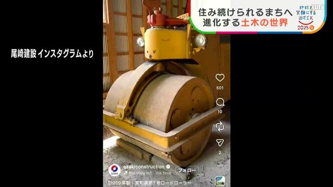 土木の現場から離れた半世紀以上前のロードローラー。しかし今はSNSという新たな舞台に活躍の場を変えて、土木のPRという面で業界に貢献しています。