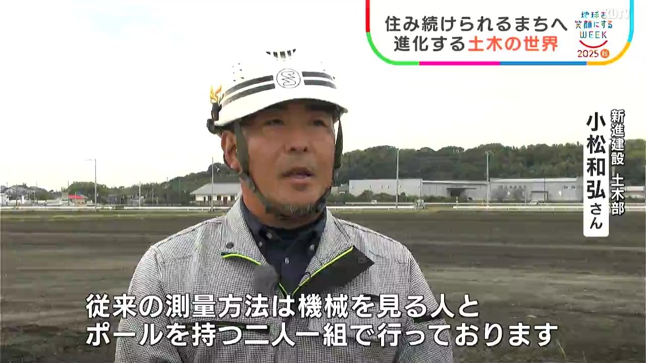 「従来の測量方法は機械を見る人とポールを持つ二人一組で行っております。(この現場でいうと)半日かかっていた作業がドローン測量だと数時間で処理が終わるということで大変効率的に測量ができていると思います」