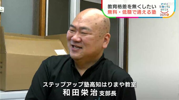 ここは、子どもたちが無料、低額で学べる学習塾、ステップアップ塾です。教育格差の是正を目的に活動する「高知ユネスコ協会」が運営していて、経済的困窮や不登校で塾に通えない子どもたちを支援しようという塾です。塾を立ち上げ、高知の支部長を務めるのは、土佐塾中学高校の教諭でもある和田栄治(わだ・えいじ)さん。自身の経験から「学ぶ大切さ」を実感し、誰もが安心して学習できる環境を作ろうと立ち上がりました。