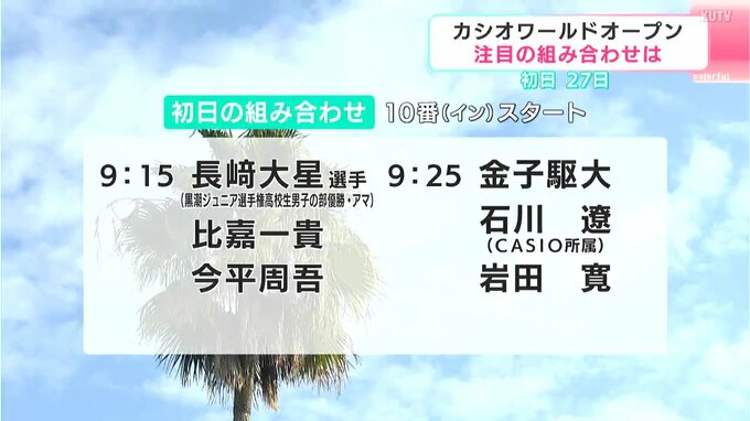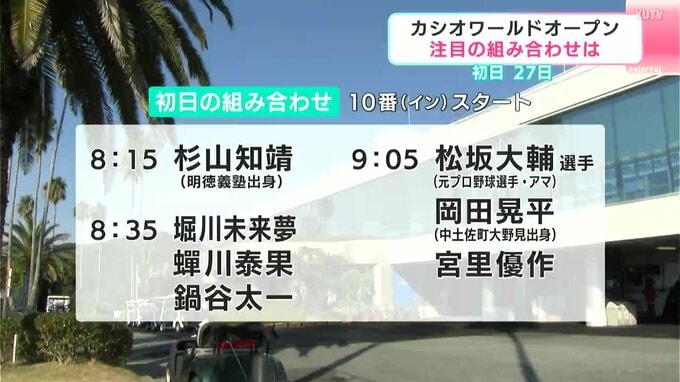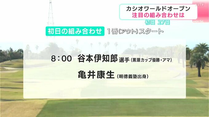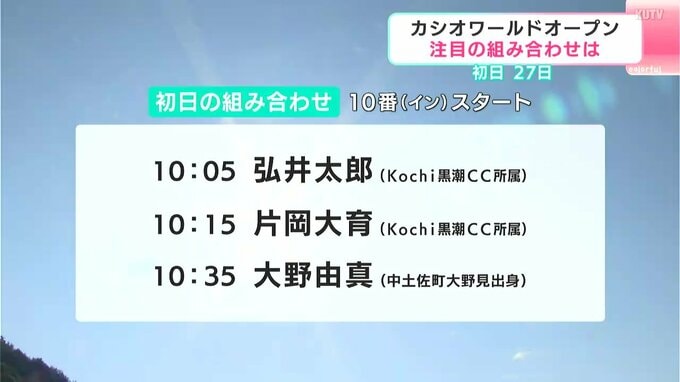 高知では20回目の記念大会となるカシオワールドオープンには、プロアマ合わせて108人が出場します。来季のツアーシード権をかけた熾烈な争いが繰り広げられる4日間。27日、大会初日の組み合わせです。