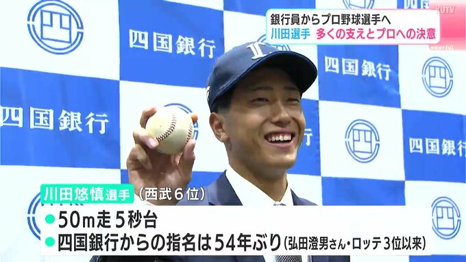 プロ野球ドラフト会議で西武ライオンズから6位指名を受けた、四国銀行の川田悠慎(かわだ・ゆうしん)選手。四国銀行からの指名は54年ぶりの快挙です。銀行員からプロ野球選手へ。そこには、たくさんの支えと、大きな期待がありました。