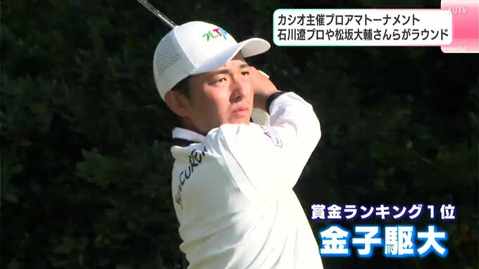 賞金ランキング1位の金子駆大 プロは余裕の表情を見せながらも、力強いショットを放ちます。