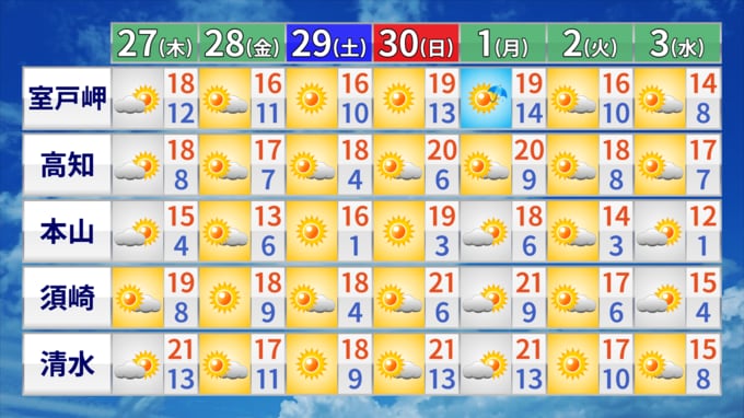 気温は平年並みで、前日と同じくらいのところが多くなるでしょう。夕方からは黄砂が飛来してくる可能性があります。外出時はマスクや眼鏡など服装に工夫が必要です。