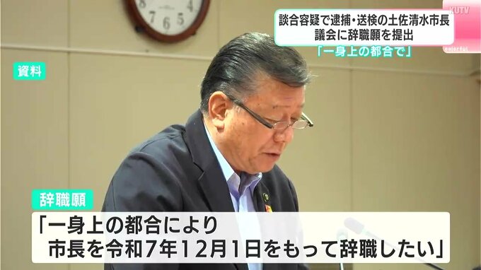 辞職願は市長の代理人を通して市に届けられ、28日午前10時ごろ土佐清水市議会の作田喜秋議長に手渡されました。辞職願には、「一身上の都合により市長を令和7年12月1日をもって辞職したい」という旨の内容が手書きで記されていたといいます。提出された辞職願は12月1日から始まる土佐清水市議会定例会の12月会議ではかられ、議会が同意すれば程岡市長は12月1日で辞職することになります。