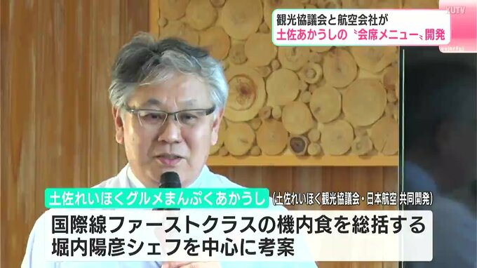 土佐れいほく観光協議会と日本航空の共同開発で、国際線ファーストクラスの機内食を総括する堀内陽彦シェフが中心となって考えました。