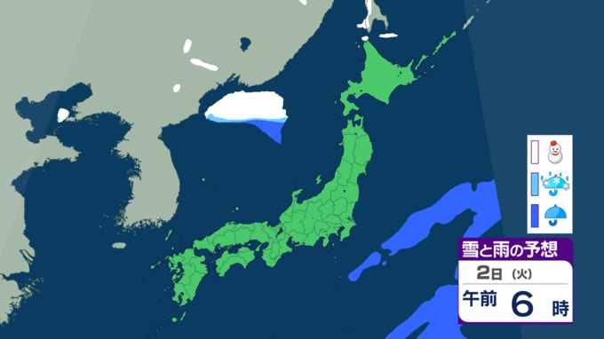 黄砂の後は各地で雪の予想⋯九州や中国地方でも雪?どこで降るのか? 12月上旬としては厳しい冷え込みに 【雪のシミュレーション】 2025年11月30日(日) 08:00 国内 天気 12月2日の雪シミュレーション 2日は引き続き、北海道を中心に雪が降る見込みです。