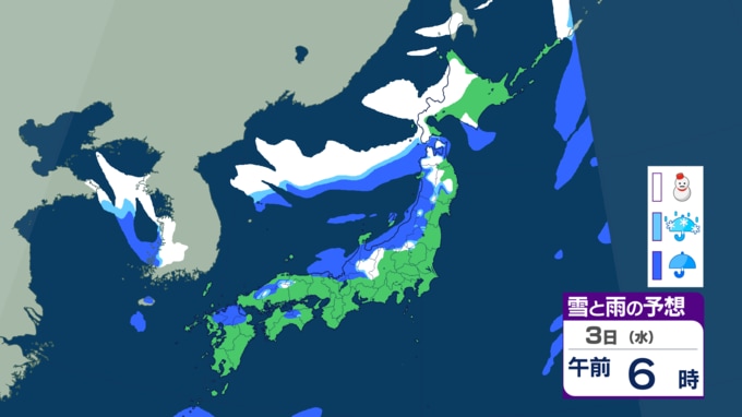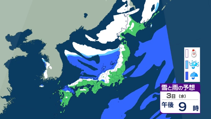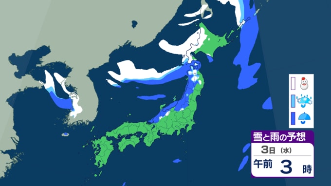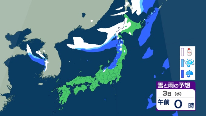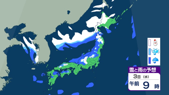 黄砂の後は各地で雪の予想⋯九州や中国地方でも雪?どこで降るのか? 12月上旬としては厳しい冷え込みに 【雪のシミュレーション】 2025年11月30日(日) 08:00 国内 天気 3日の雪シミュレーション 3日になると、冬型の気圧配置の影響で、日本海側を中心に雪が降り、北海道だけでなく、新潟などの北陸や鳥取などの中国地方でも雪の予想です。