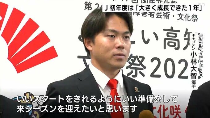 キャプテンの小林大智選手は、「J初年度」となった今シーズンについて、これまで以上の「声援」と、強豪を相手にした「挑戦」で、大きく成長できた一年だったと感謝を伝えました。