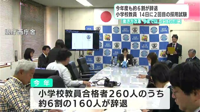 2025年、県教委が行った小学校教員採用試験の合格者260人のうち、3日時点でおよそ6割の160人が辞退しています。現時点で採用予定人数には30人ほど足りていないため、12月14日に2回目の採用試験が行われます。
