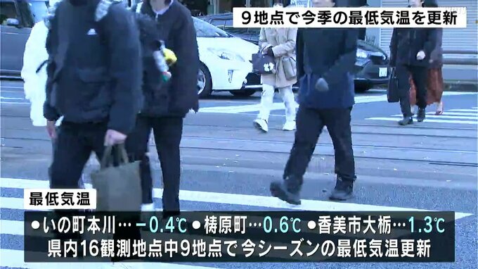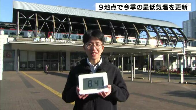 強い寒気の影響で高知県内は朝から冷え込み、9つの観測地点で今シーズンの最低気温を更新しました。