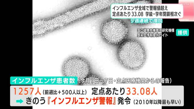 定点医療機関あたりでは「33.08人」で、高知県は10日に「インフルエンザ警報」を発令しています。警報の発令は、2010年以降で最も早くなっています。