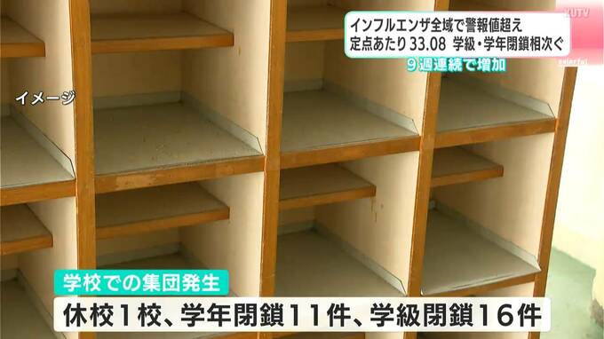 高知県内ではインフルエンザの患者が急増しています。先週の定点あたりの報告数は「33.08人」で、学年閉鎖や学級閉鎖も相次いでいます。