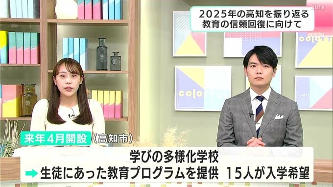 2026年4月、高知市に「学びの多様化学校」が開設されます。不登校の中学生が通える学校で、生徒それぞれにあった教育プログラムが受けられます。15人が入学を希望していて、すでに定員に達しているということです。ここまで教育についてお伝えしました。