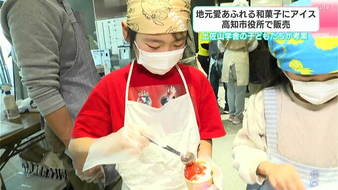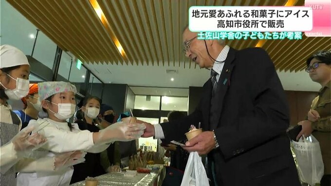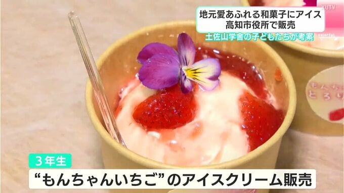 高知市役所で商品を販売したのは土佐山学舎の3年生と5年生です。土佐山地域の魅力を伝えようという取り組みで、5年生は、ユズを使った和菓子と自分たちが育てたお米を。3年生は「もんちゃんいちご」のアイスクリームを販売しました。