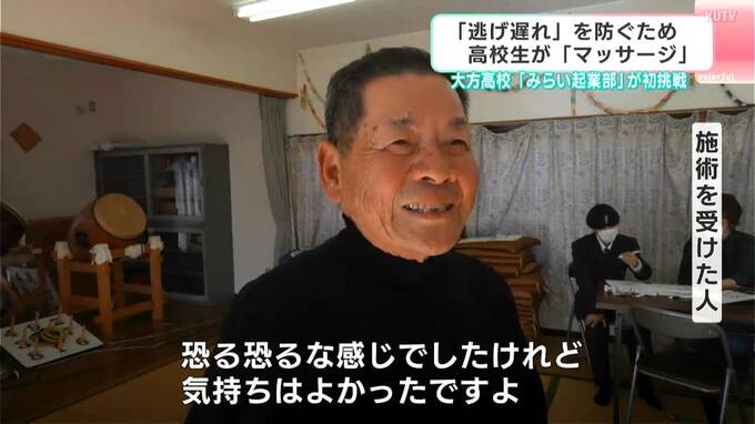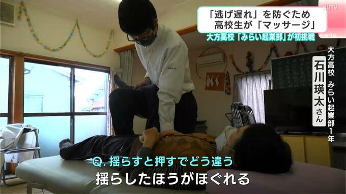 師匠も太鼓判を押す技術。23日は初めて地域の人を相手にマッサージを実践しました。