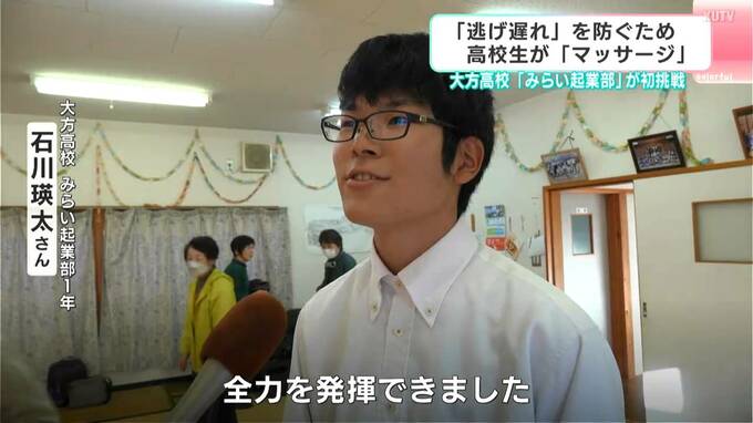 「整体を行って、(災害時)たくさんの人が逃げられるようにマッサージを行っていきたいと思います。少しでも黒潮町がよくなるように、高校生自ら頑張って、いろいろ考えていきたいです」