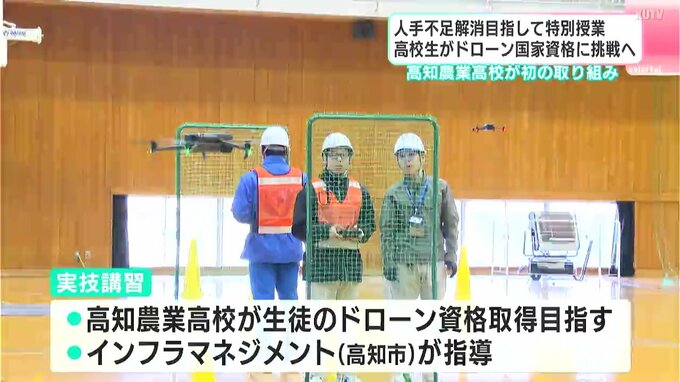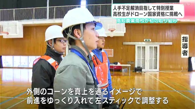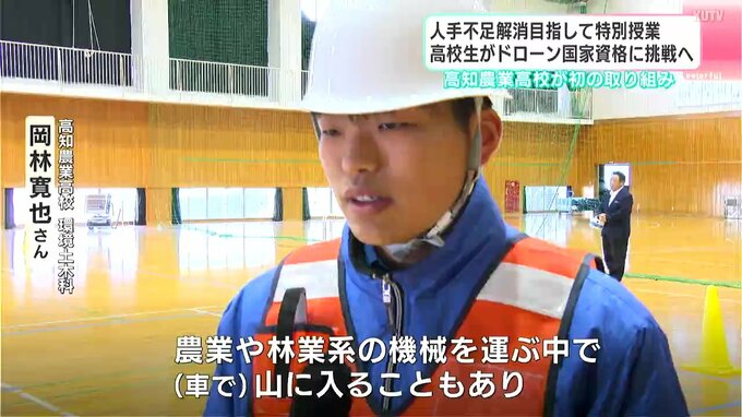 高知農業高校で行われたドローンの実技講習。真剣な表情でコントローラーを握るのは、環境土木科の2年生と森林総合科の3年生の2人です。人口減少が進む県内の現場では、「いかに少ない人数で効率よく作業するか」が喫緊の課題となっています。そこで高知農業高校は、「即戦力」を育てようと、国の事業を活用して生徒のドローン資格取得を目指すことにしました。