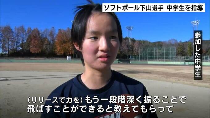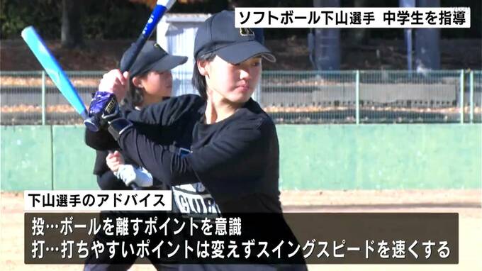 講師を務めたのは、四万十市出身でトヨタ自動車女子ソフトボール部の下山絵理(しもやま・えり)選手です。日本代表メンバーの1人で、去年のワールドカップでは4番打者として世界一に貢献しました。教室は県ソフトボール協会が企画し、県内のクラブチームに所属する中学生およそ10人が参加しました。