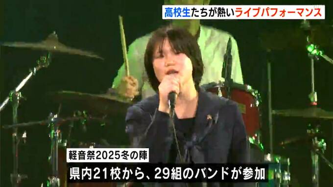 軽音祭は2012年から夏と冬の年2回開かれていて、今回で30回目です。大会には県内の21校から29組のバンドが参加し熱いパフォーマンスを繰り広げました。