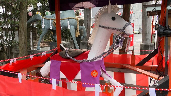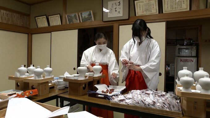 神社には来年の干支、午の張り子や門松などが用意され、30日は参拝に訪れた際に、お神酒などを受け取ることができる「授与所」の設置が行われました。