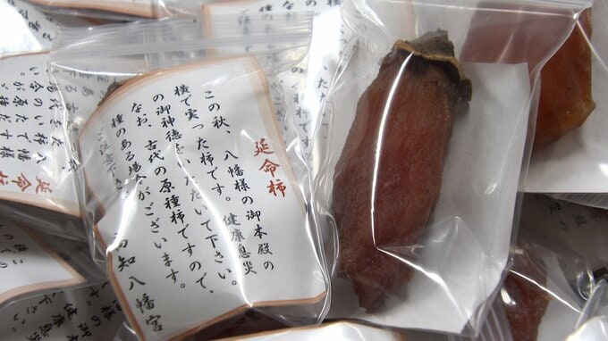 また、今年は境内で育った柿を初詣客に配る予定で、袋詰めの作業も行われました。豊作の時は柿が200個ほど採れるということです。