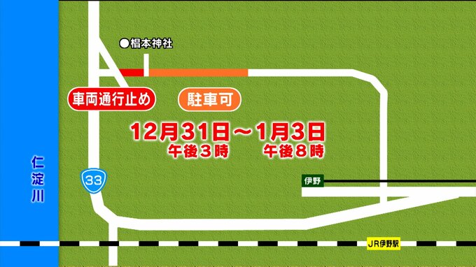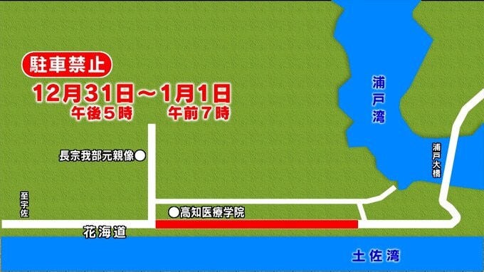 初詣や初日の出見物の混雑対策として、高知県内各地で交通規制が実施されます。